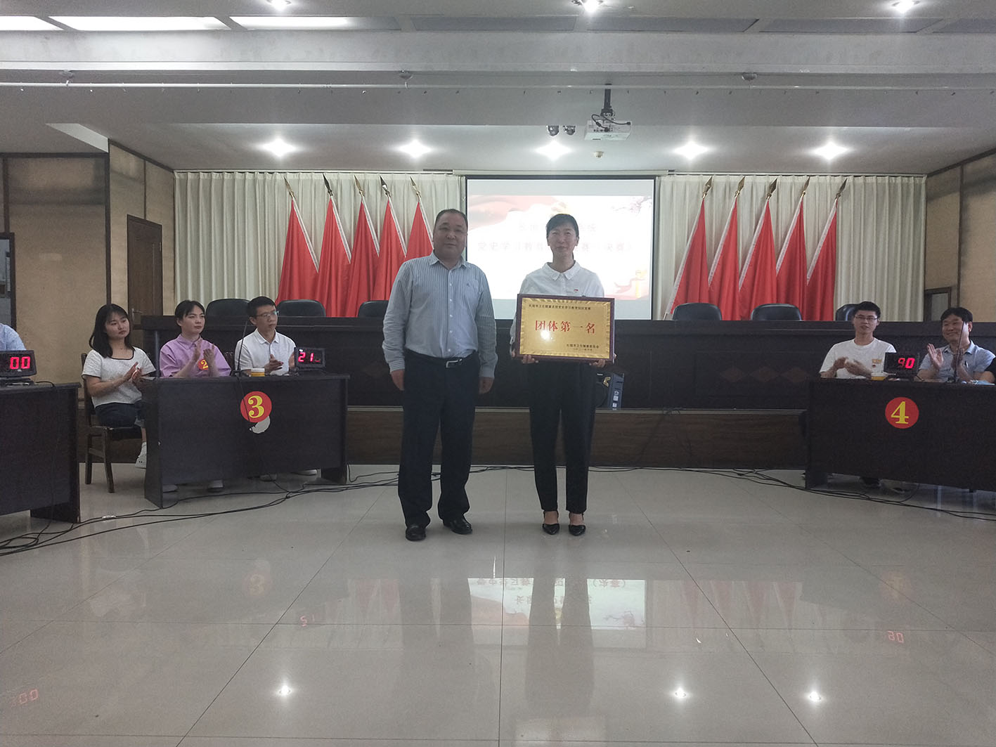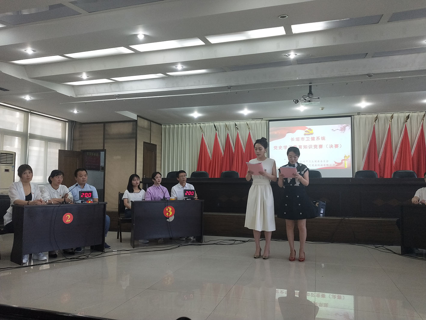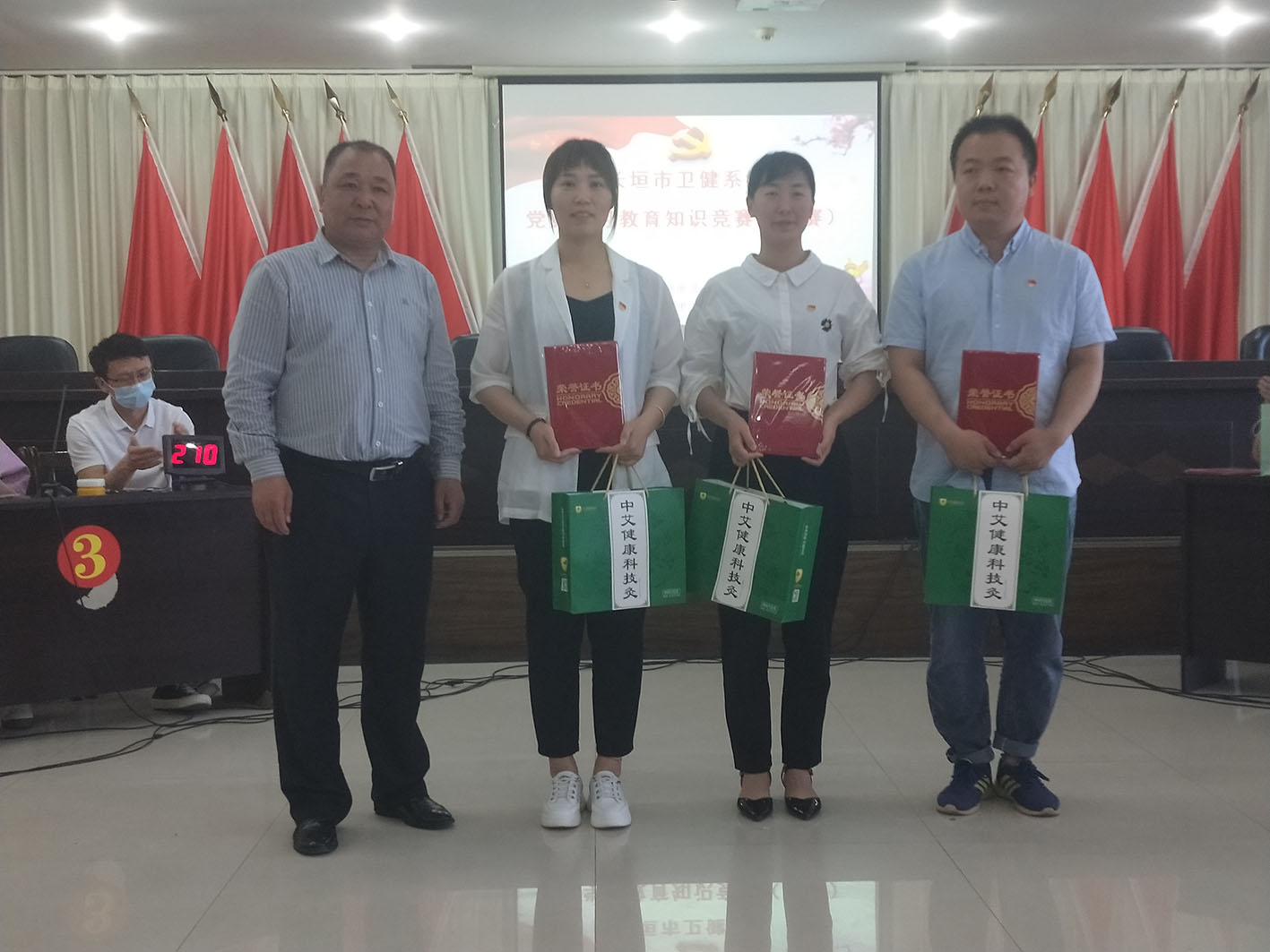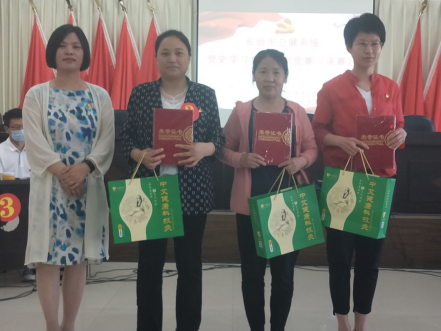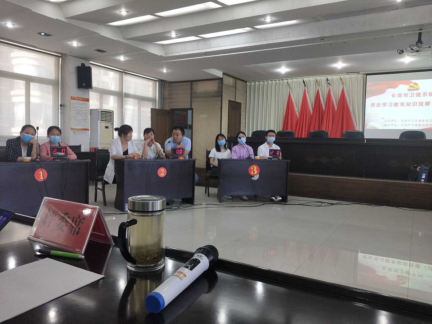 为深入发动广大党员干部了解党史、学习党史、宣传党史,增强学习的趣味性、针对性、实效性,扎实推动党史学习教育走深走实,6月4号下午,长垣市卫健委举行了系统党史学习教育知识竞赛活动,担任评委的有卫计委纪检监察组组长王建军同志;卫健委党组成员、副主任李卫红同志;卫健委副主任石金霞同志。